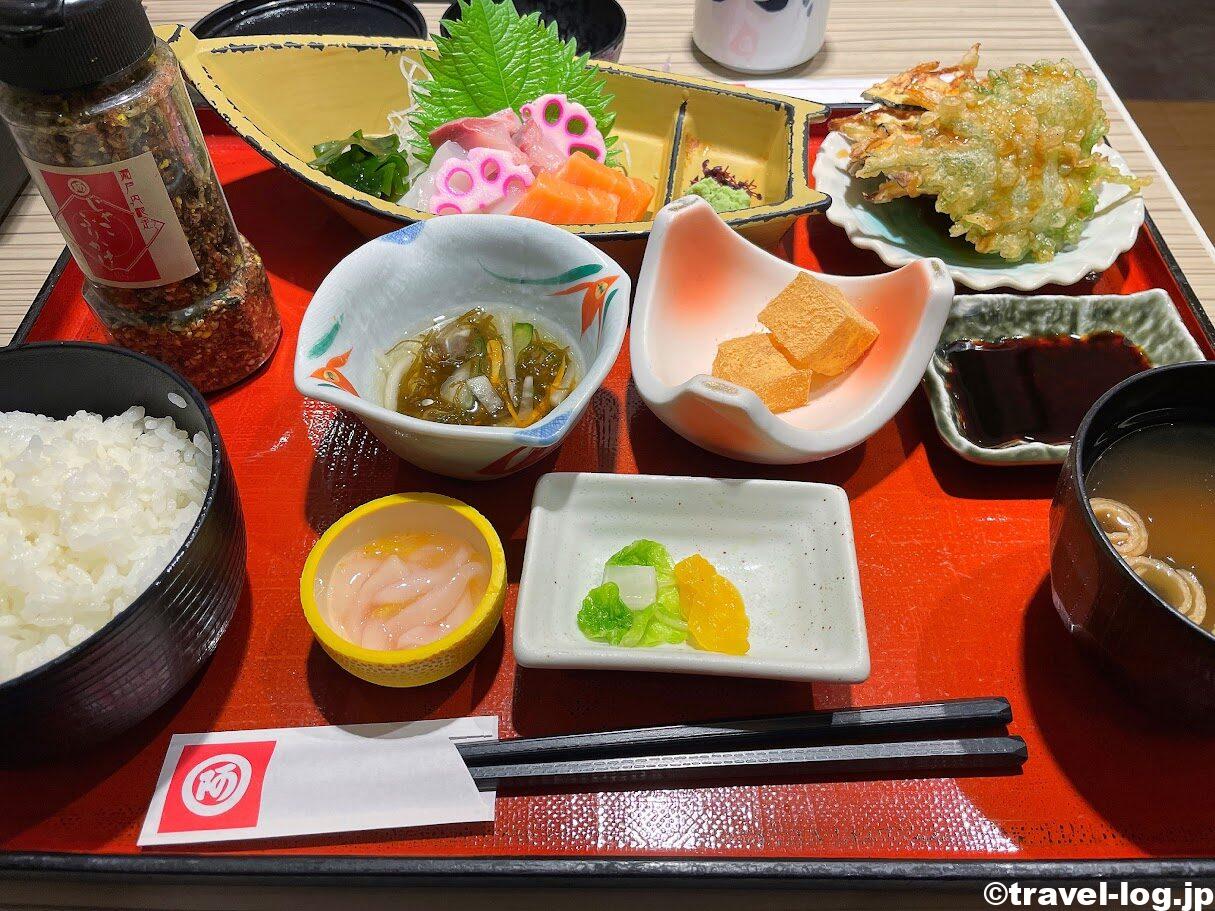 やっぱり海のものが食べたいのだ やっぱり福山に来たら、海の幸を食べたいよねぇ新幹線に乗ることを考えると、やっぱりお手軽に駅で食べられるのは重宝する駅の下にあるさんすて福山内にあるお店をぶらぶら探してみる うーん、そばもいいけどやっぱり定食かなちーいかという言葉に惹かれてお店に突入本日のお勧め定食はこれですーと勧められて、はいそれにします いやー、かき揚げという言葉に惹かれちゃったんだよね待つこと数分、やってきました!おー、品数もあって美味しそう 刺身の盛り合わせも美味、サーモンの脂が載ってたまらんわーそし ...