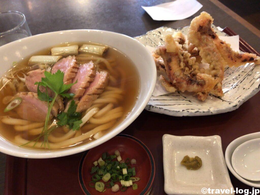 うん、合鴨ネギうどんとゲソ天盛を注文。