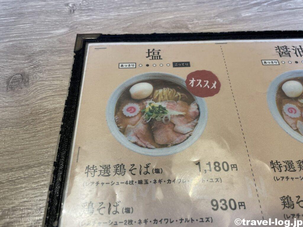 メニューを見ながら、やっぱりおすすめの鶏そば(塩)に肉飯に決めた!