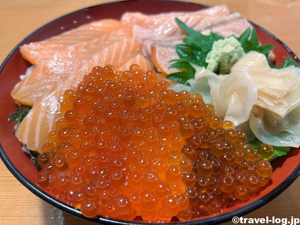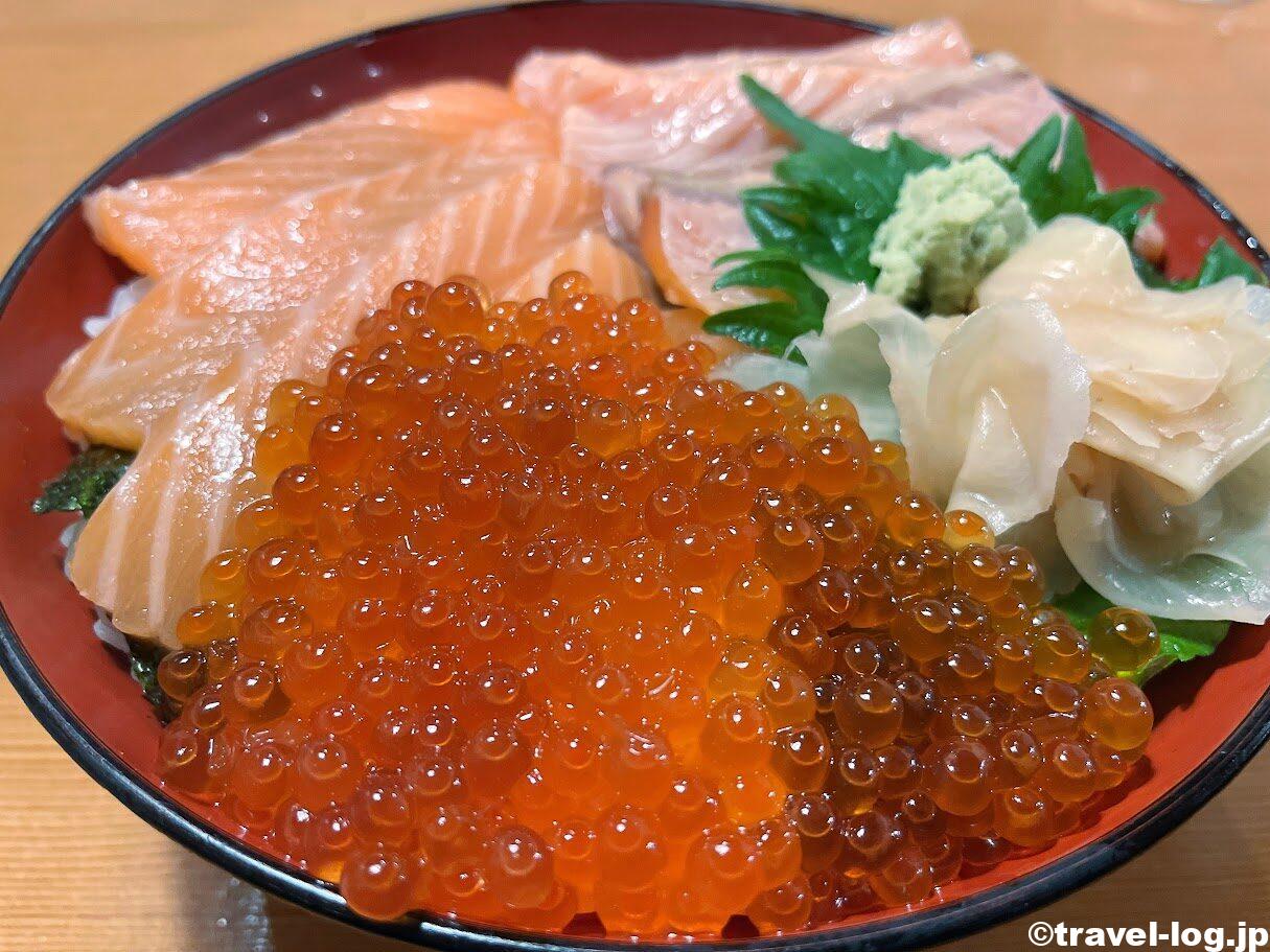やっぱり海産物を!と迷いつつ、ネタ1.5倍の「サーモン親子丼」を注文。
