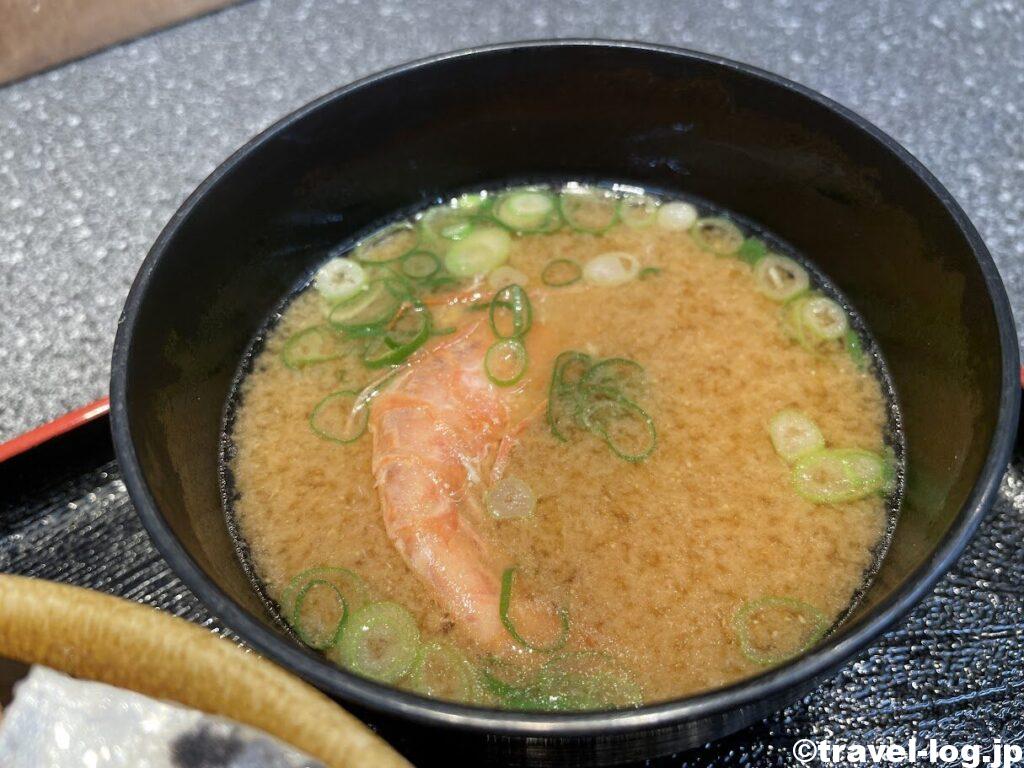 このお店の味噌汁には、立派なエビが一匹入っているんです。