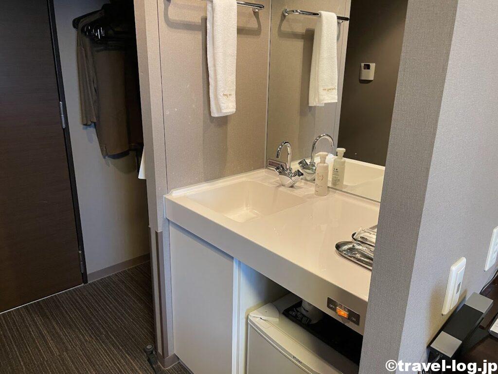 入り口に服をかけれるのと、キャリーケースを開いて収納出来るスペースがあってとっても良い