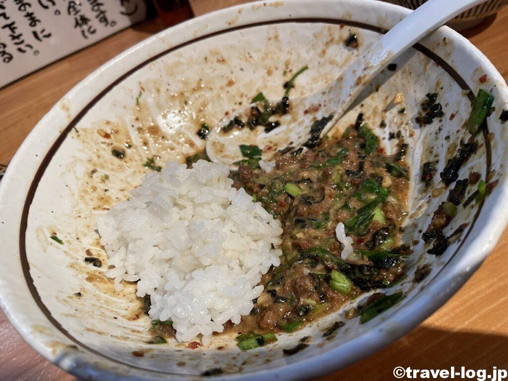 麺をあっというまに平げ、残ったご飯を投入