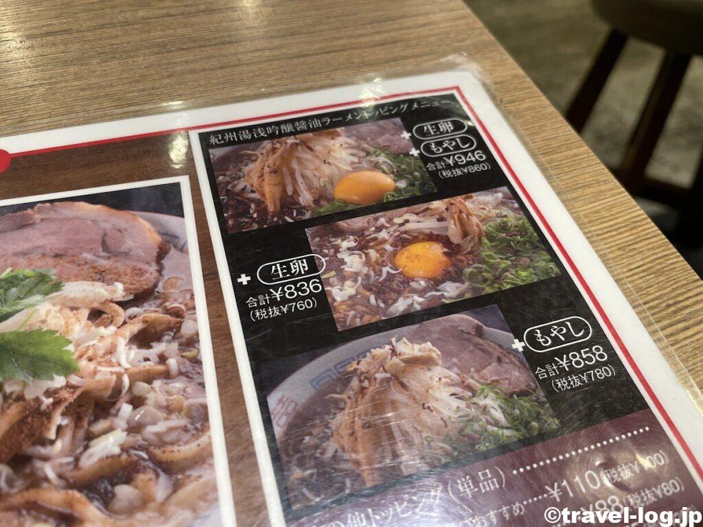 脇をみるとトッピングセットがあるじゃないか!生卵ともやしの追加セットを注文
