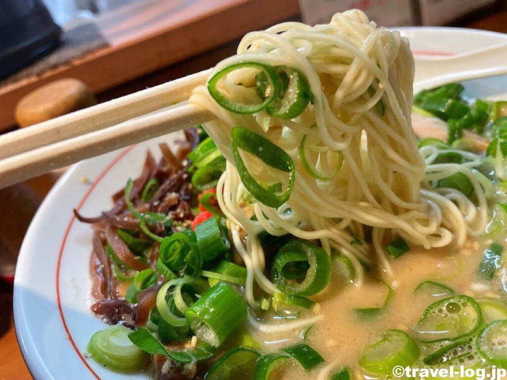 麺を食べてみると、細麺でしっかりスープと絡んでいる