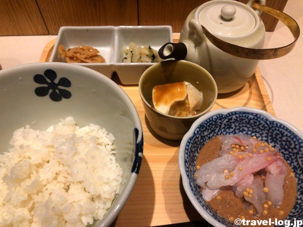出汁と一緒に食べるご飯も格別で、鯛を引き立てている。
