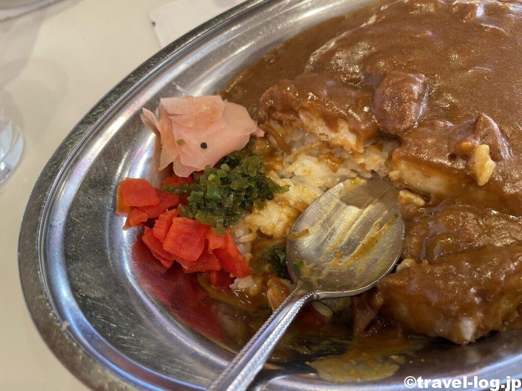 細かくカットされて、カレーと1対1で食べれて満足感もヒートアップ