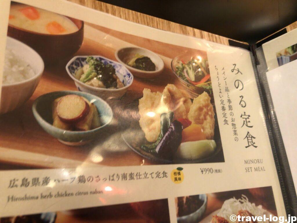メニューを眺めても迷ってしまうので、店員さんのお勧めしてもらった、「広島県産ハーブ鶏のさっぱり南蛮仕立て定食」を注文。