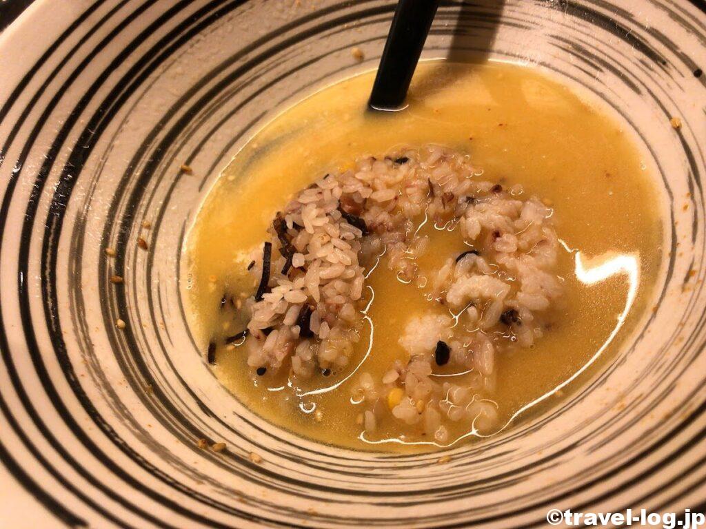 メニューに書いてあるアドバイス通り、麺を一気に食べ尽くし、そこに替飯を投入