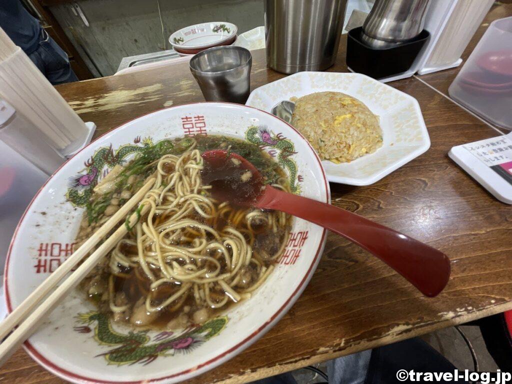 スープを一口。どっしりとした醤油味。おいしー