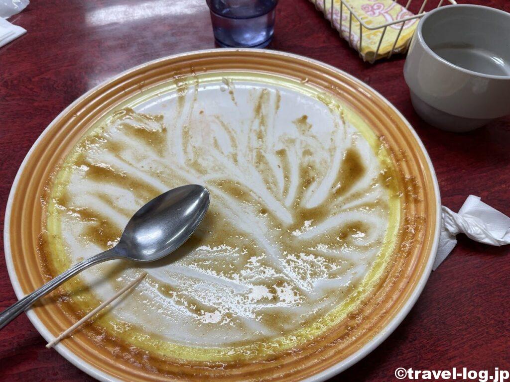 水気の多いルーがご飯と絡んで、さらに白身とまざり、スープ感覚でカレーを食べる