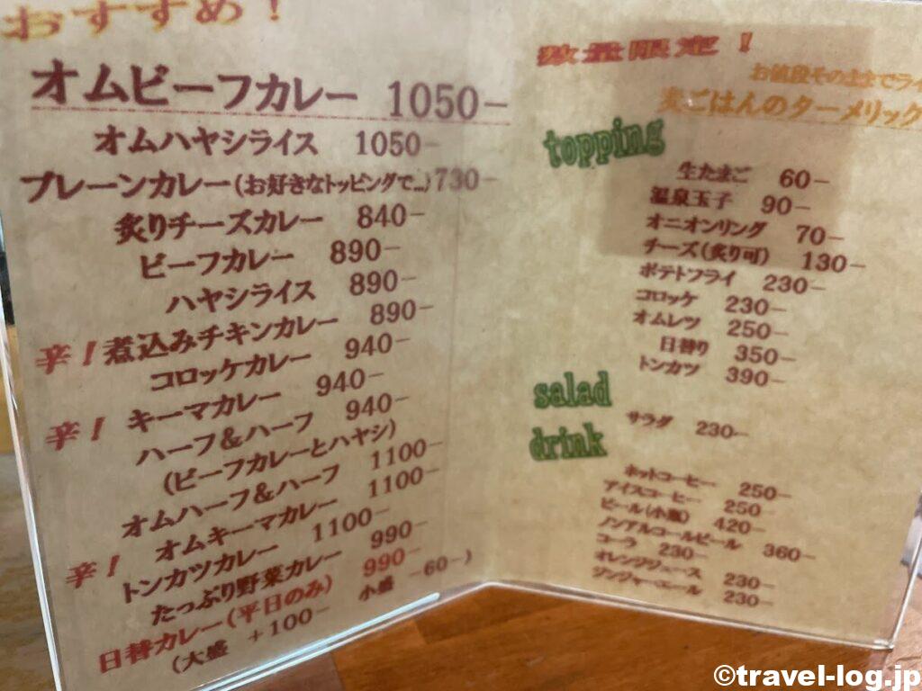 メニューを眺めてやっぱりトンカツカレーだよなぁそれにトッピングは生たまご