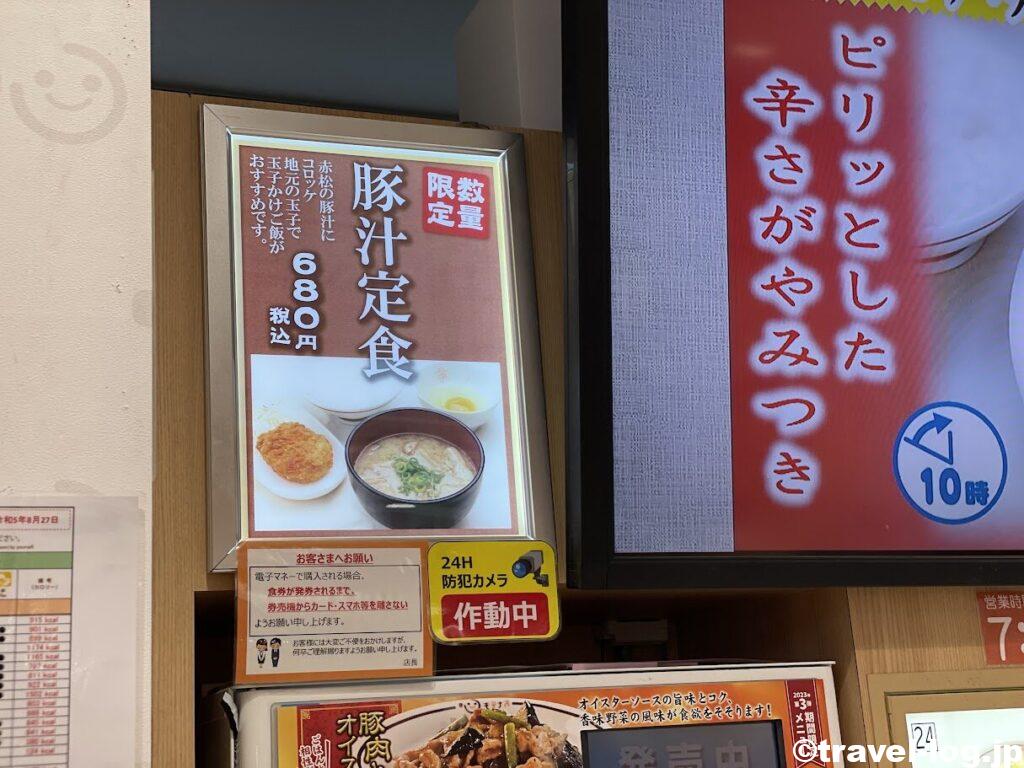 「赤松の豚汁にコロッケ、地元の玉子で玉子かけご飯がお勧めです。」なので迷わず食券をポチッた