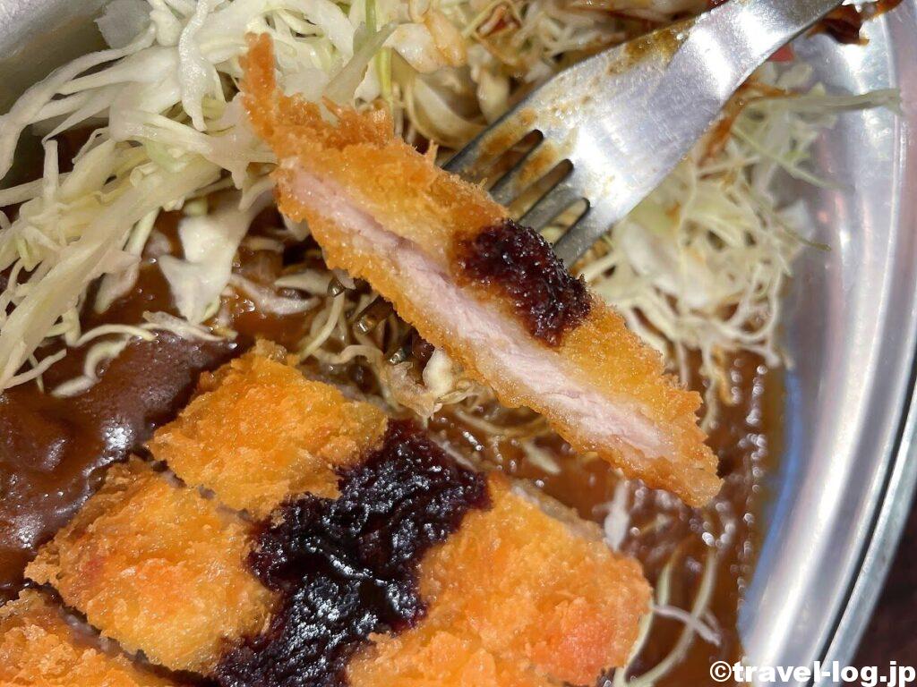 そしてキャベツを食べて、カツを堪能しながらカレーを味わう