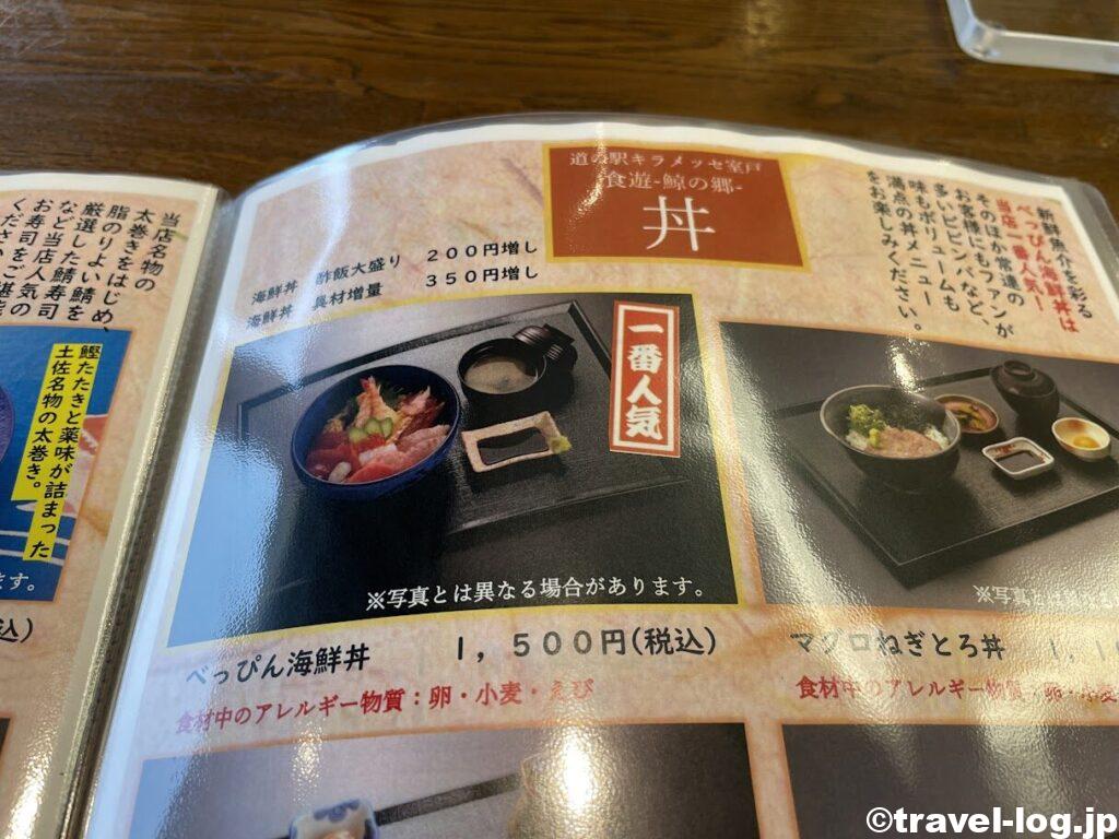 四国高知県室戸市の道の駅キラメッセ室戸のレストラン食遊-鯨の郷-では、地元高知県室戸市の特産を使用した料理が自慢。金目鯛・きんめ丼・鯨料理・かつおのたたき・浜アザミなど地産地消ならではの美味しい海の幸 ...