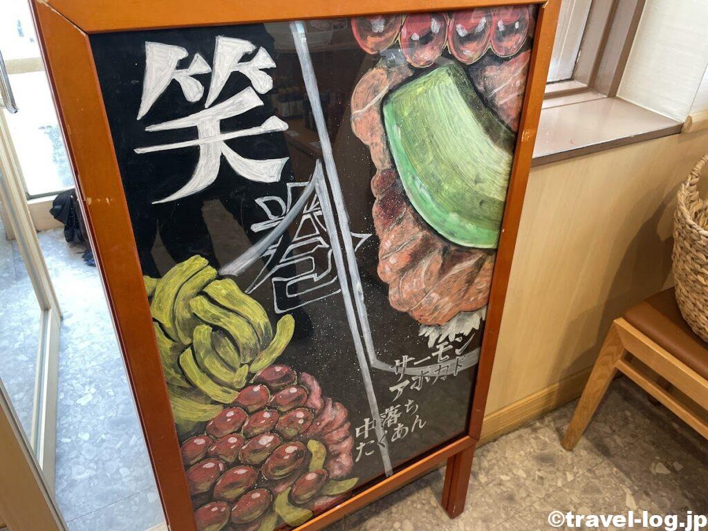 待合で待っていると、実写並みの立てかけ看板