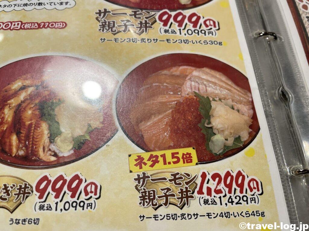 ネタ1.5倍に誘われ、ネタ1.5倍サーモン親子丼を注文!