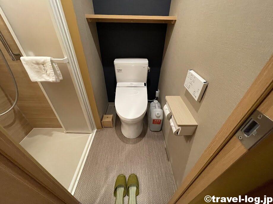 そしてドーミーインの特徴だけれども、トイレットペーパーの上が物を置けるスペースがあるんだ
