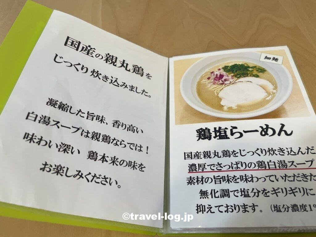 メニューを眺めて、鶏塩らーめんを注文