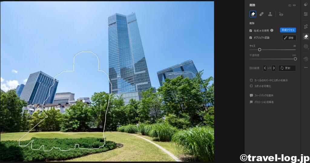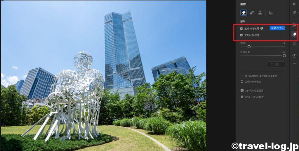 消しゴムツールで、生成AIを使用とオブジェクト認識にチェックを入れる