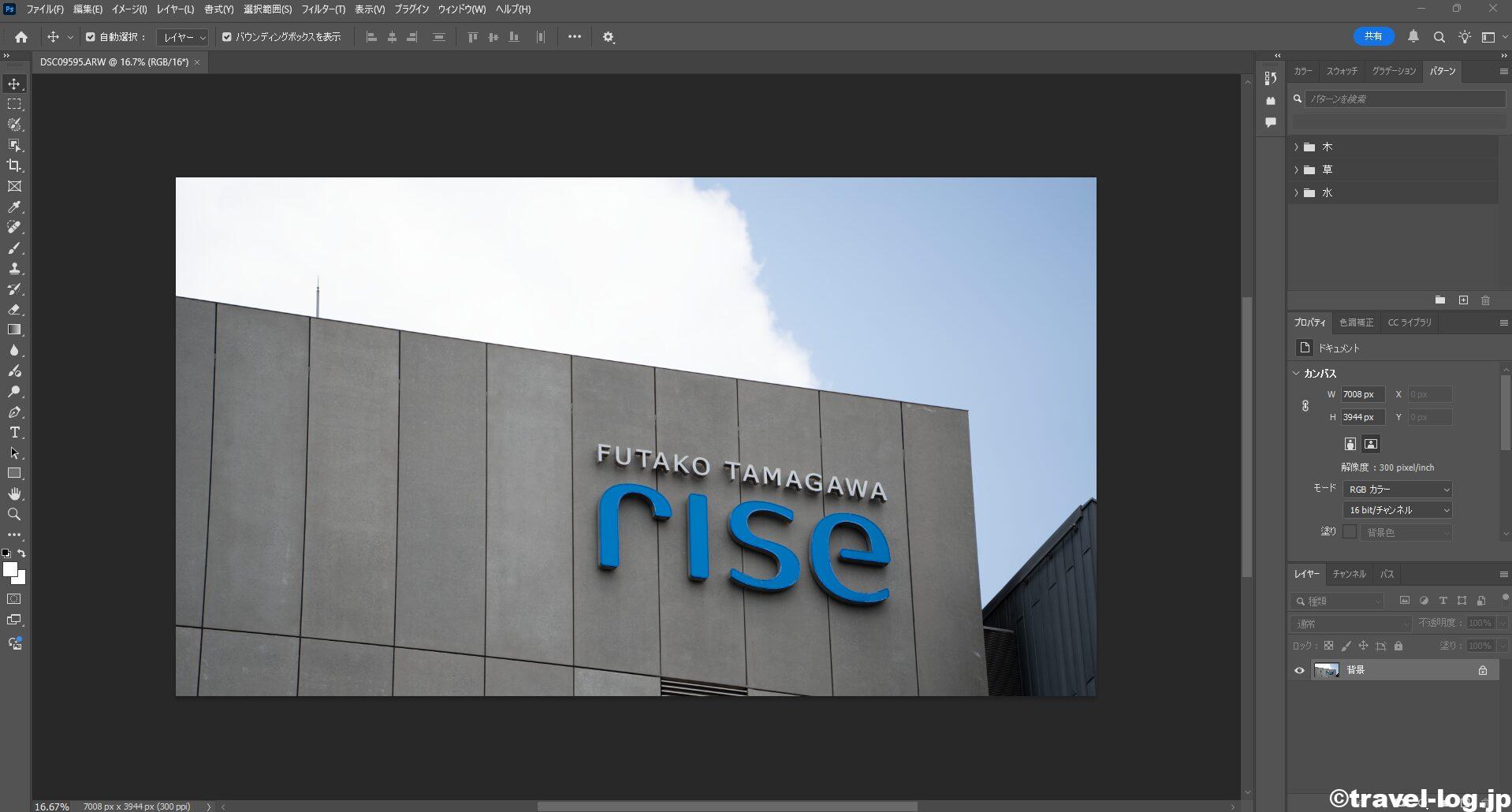 拡大縮小は「z」移動、上下はスクロール左右は、「CTRL」を押しながら上下スクロール 傾き補正フィルター→CameraRawフィルター→ジオメトリ→フルスポット修正ブラシ