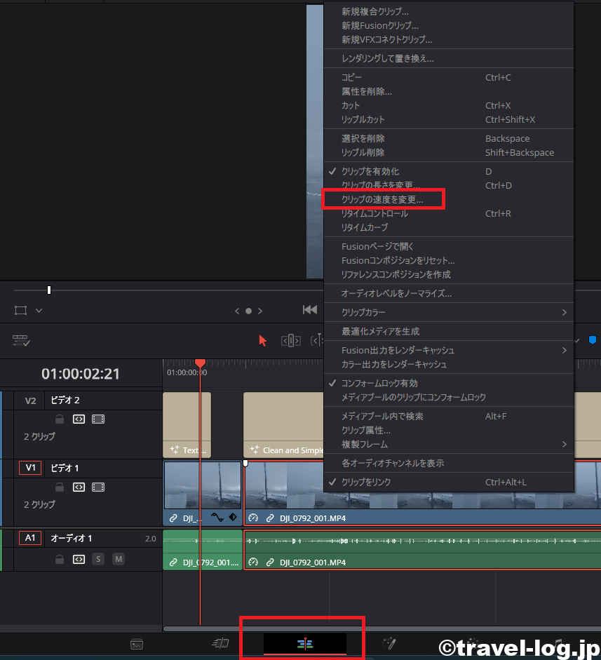 クリップの速度を変更を選択するんだ